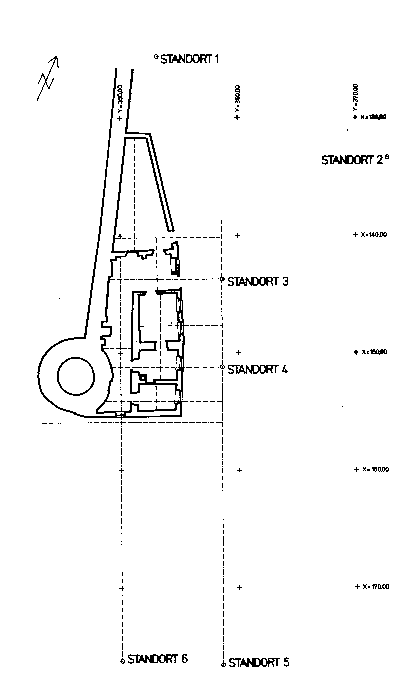 Standorte Nr. 3 - 6 auf Achsenschnittpunkten, Standorte Nr. 1 + 2