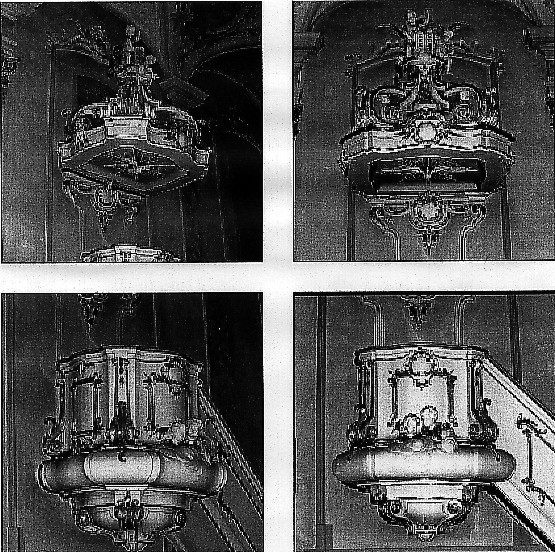 Schwäbisch Gmünd, St. Leonhard, Kanzel, Schalldeckel und Kanzelkorb.