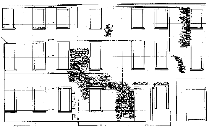Mittelbau, Nordfassade, Darstellung der bauhistorischen Befunde unter dem Putz (1993) |