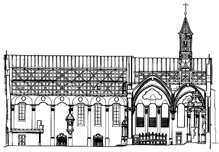 Längsschnitt Kirche nach Norden (1990) |