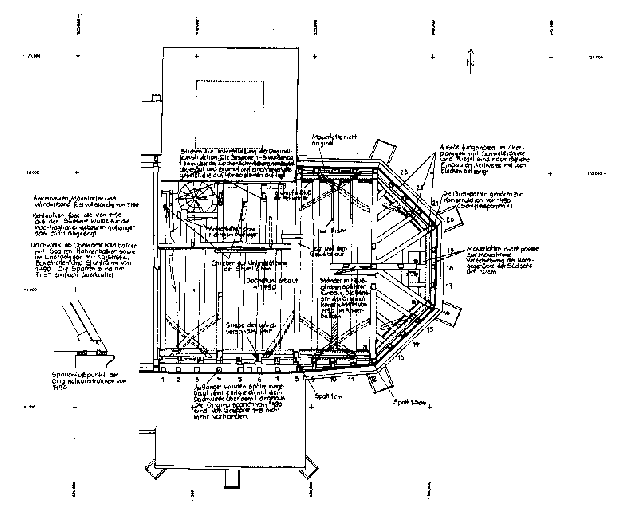 Dachstuhlgrundriß geschnitten über der Balkenlage. Anmerkungen zu den Baubefunden und Bauschäden.