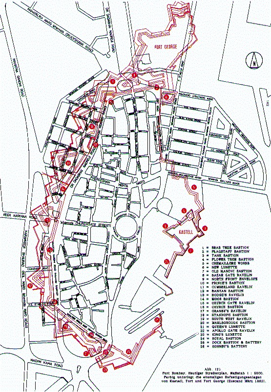 Fort Bombay. Heutiger Straßenplan, Maßstab 1 : 5000.